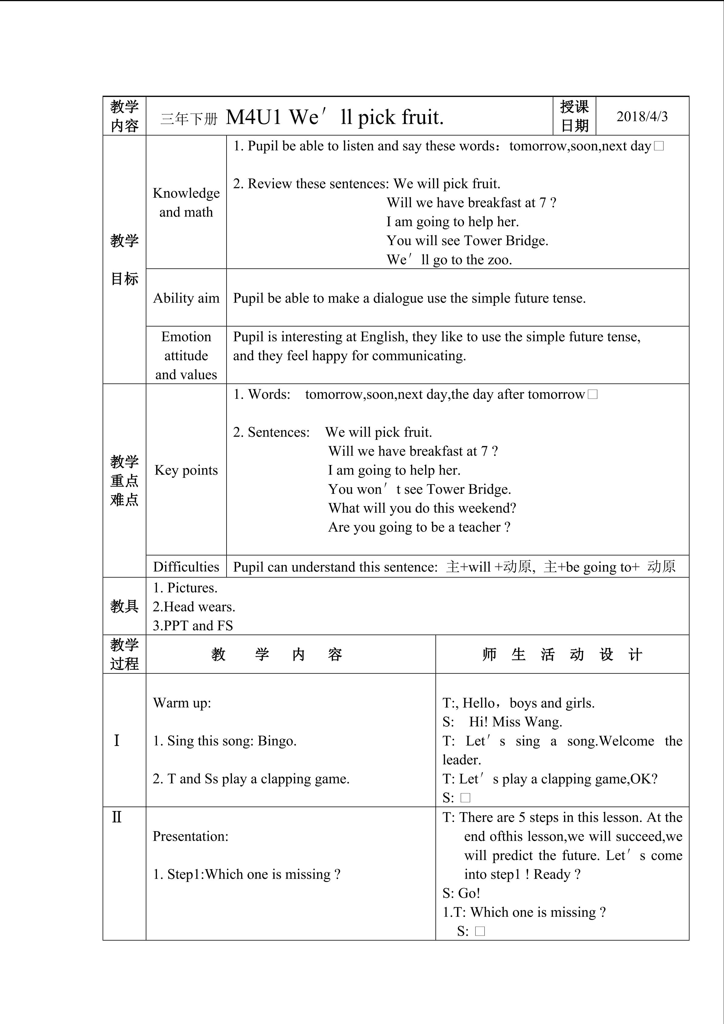 《We'll pick fruit.》教学设计