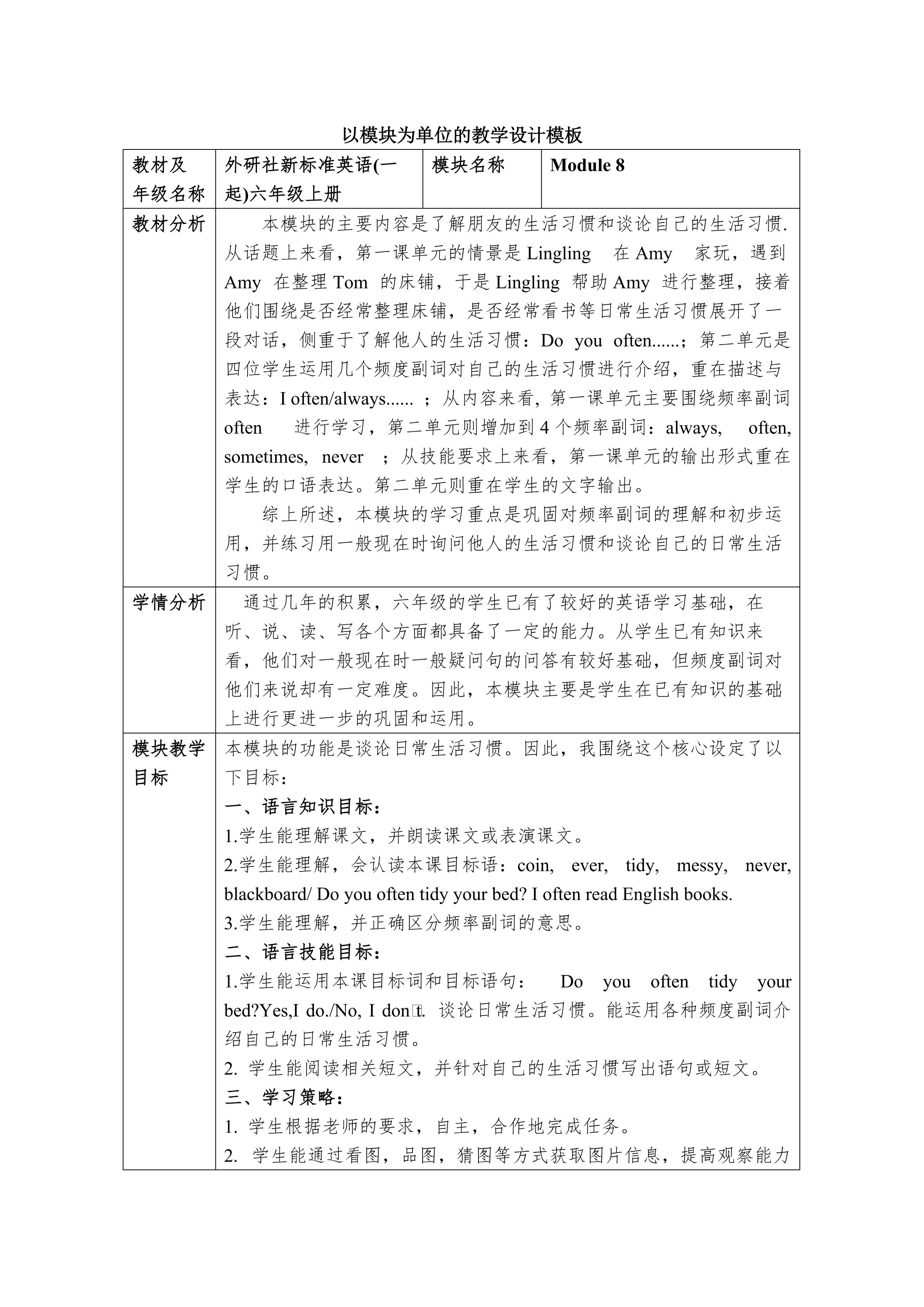 Module6 Unit 1 教学设计