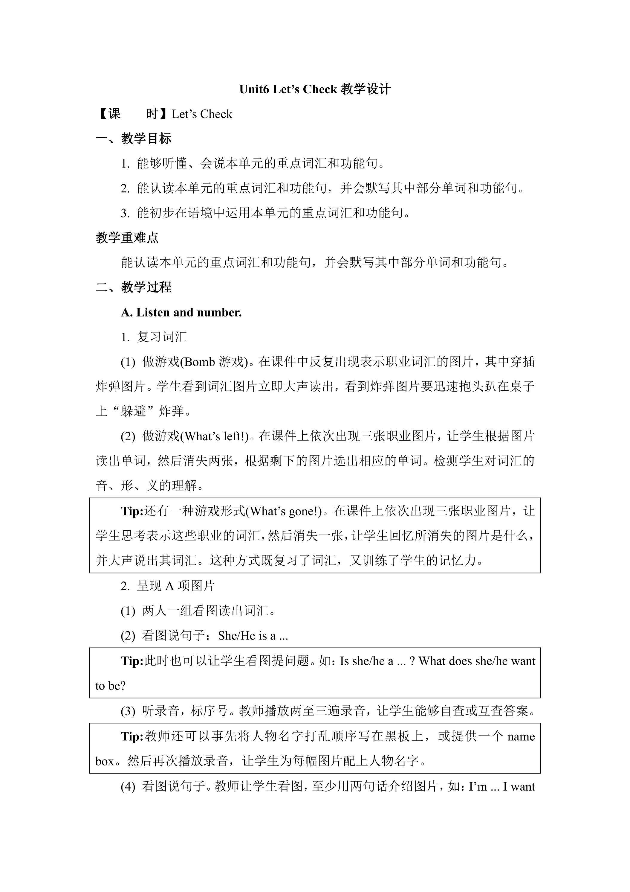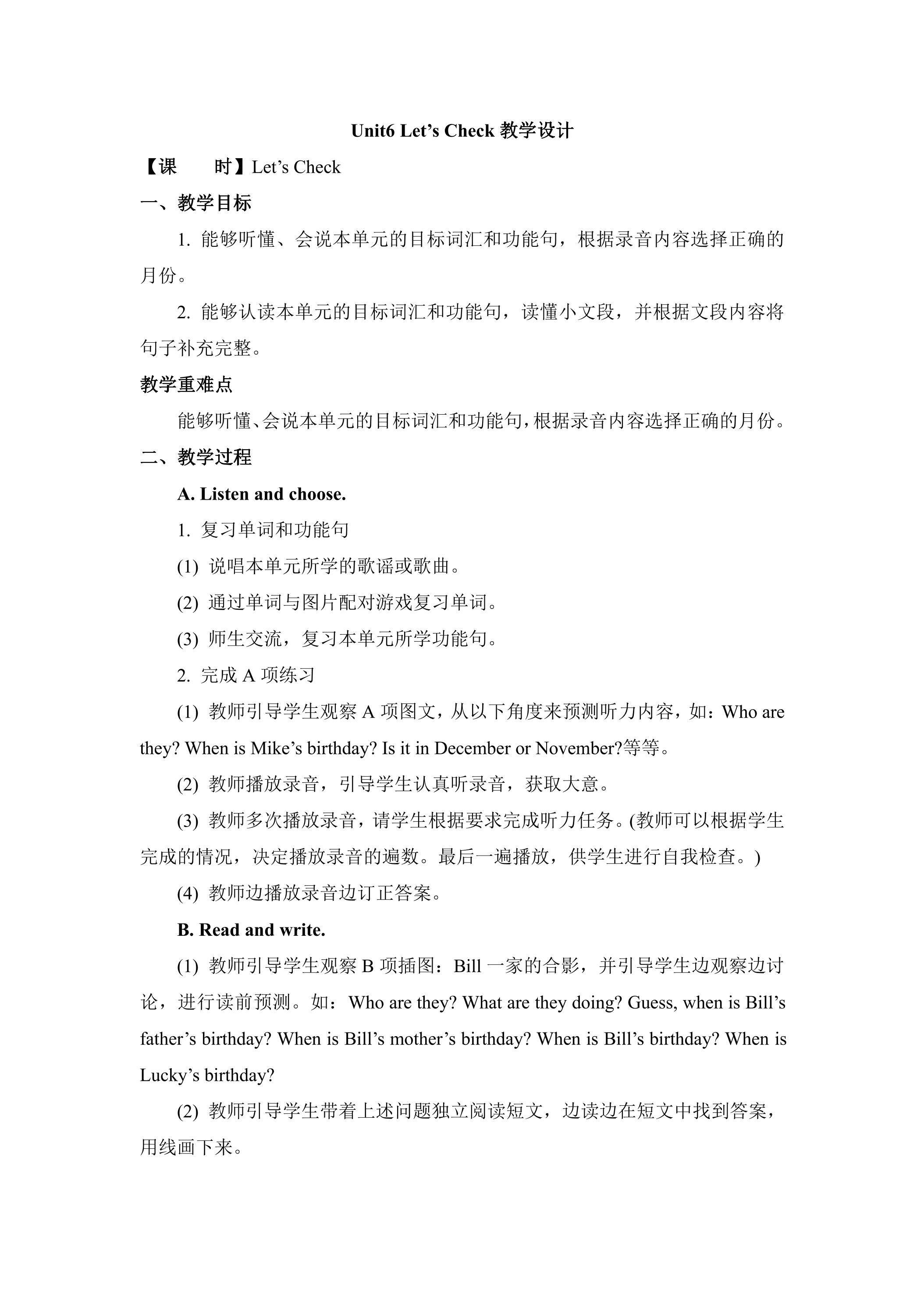 【教案】三年级上册英语人教版新起点Unit 6 Let’s Check 01