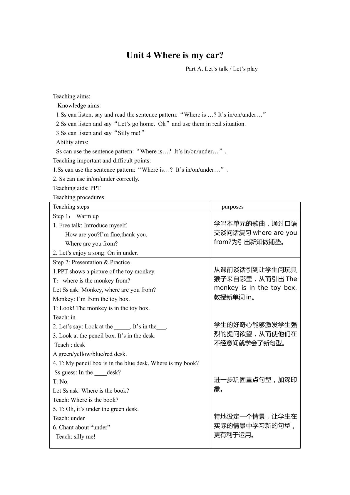 人教版三年级下册Unit4 A Let's talk