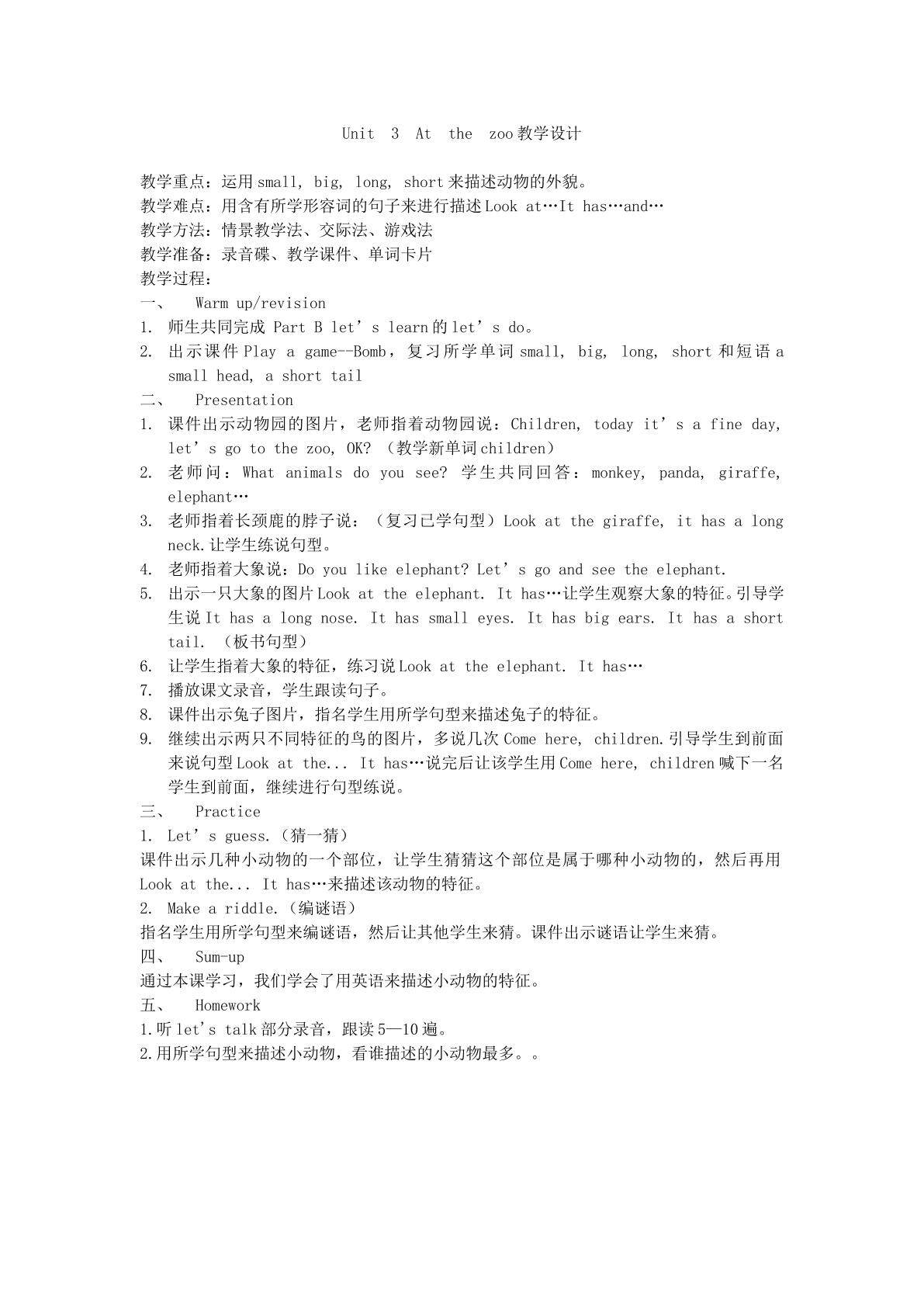 Unit3 at the zoo