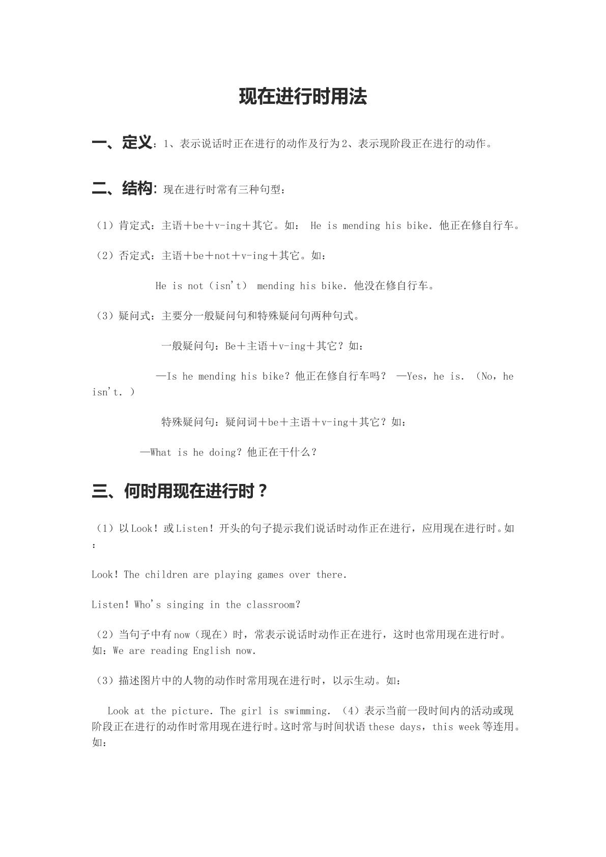 现在进行时的用法