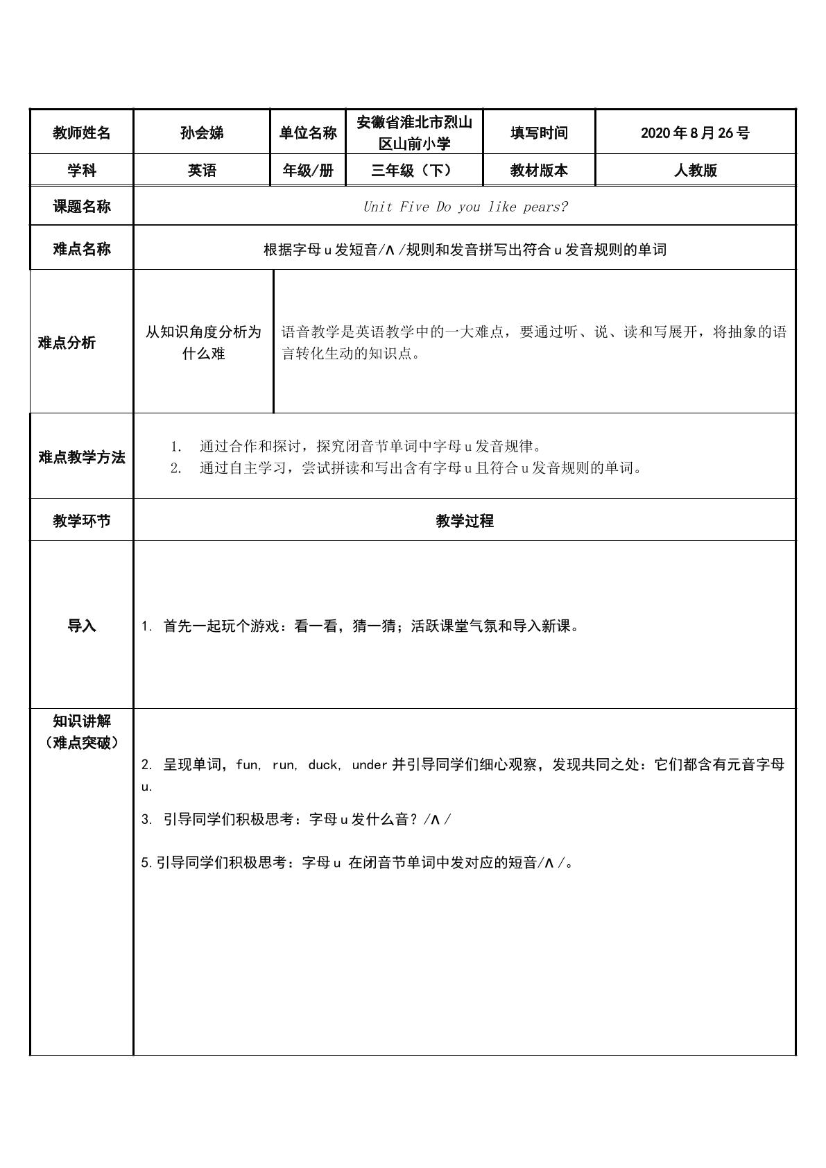 趣学元音字母u发短音