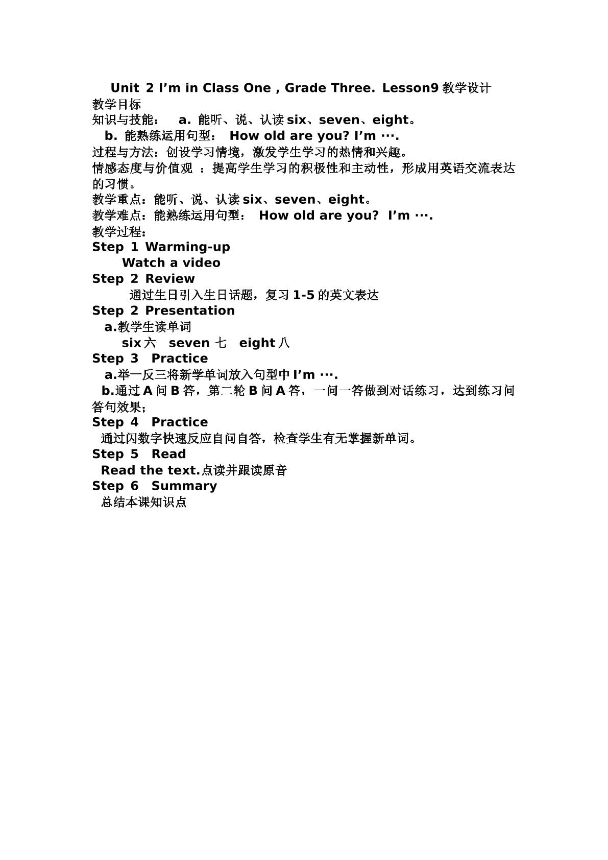 人教精通版英语三年级上册第一单元Lesson2