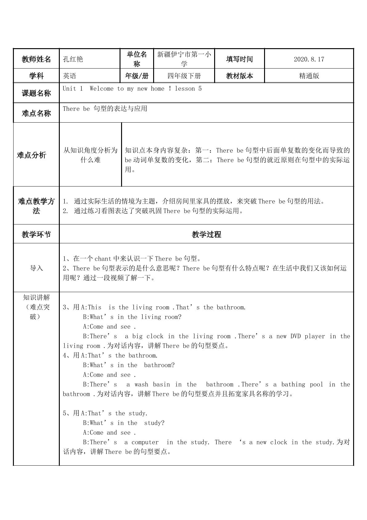 人教版三年级起点小学英语四年级下册(精通英版)There be句型的运用