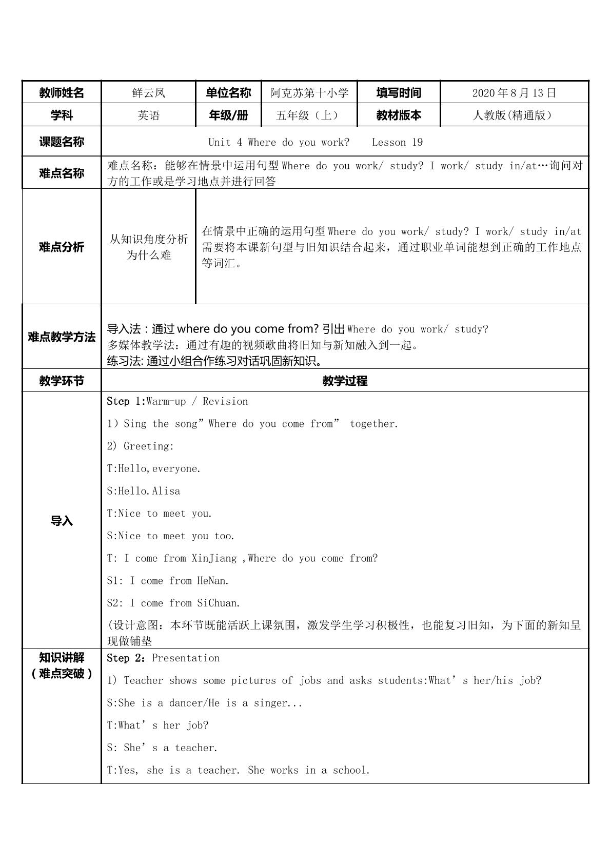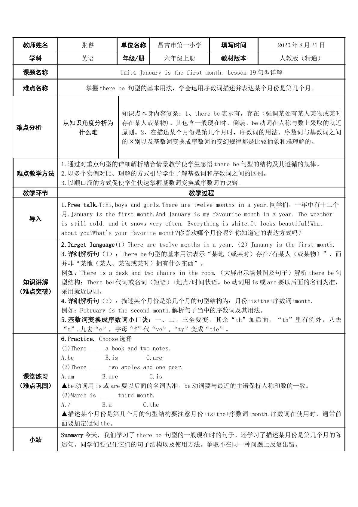 人教版精通六年级上Unit 4 Lesson19句型详解