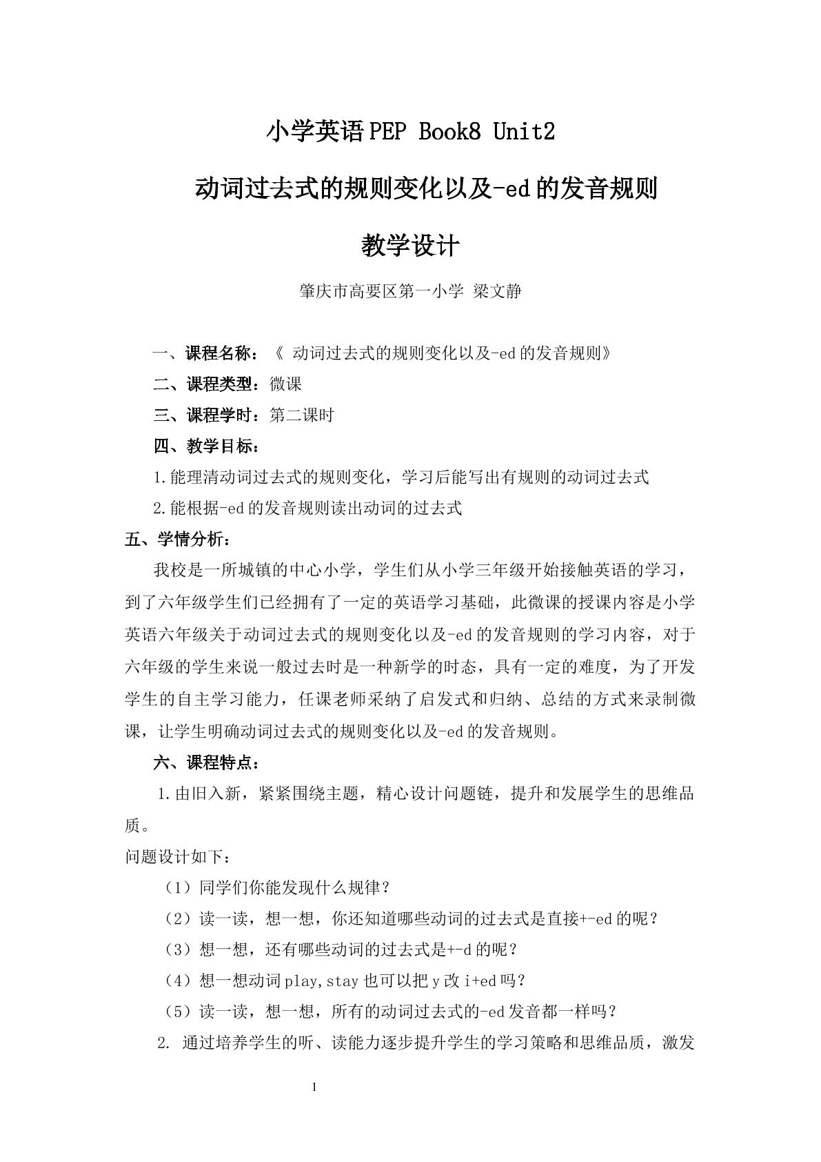 小学英语PEP Book8 Unit2动词过去式的规则变化及-ed的发音规则