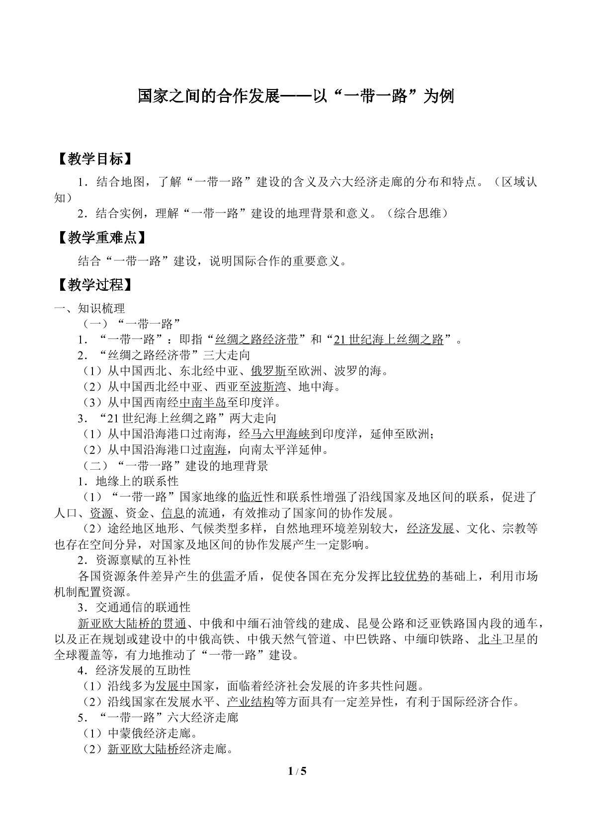 国家之间的合作发展——以“一带一路”为例