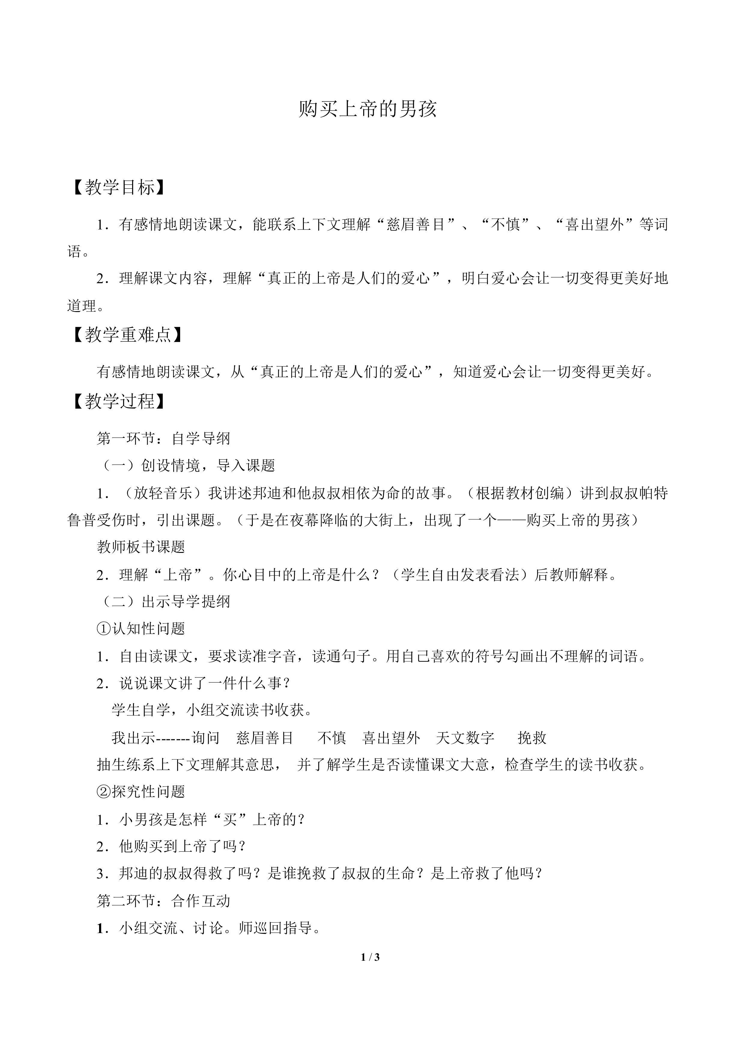 购买上帝的男孩_教案3