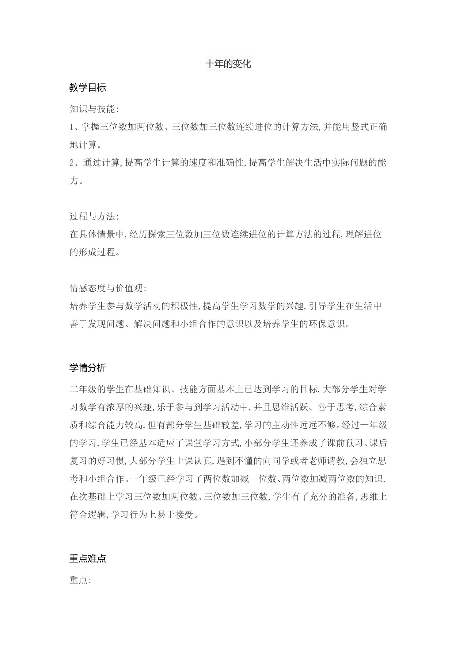 【★★】2年级数学北师大版下册教案第5单元《5.3十年的变化》