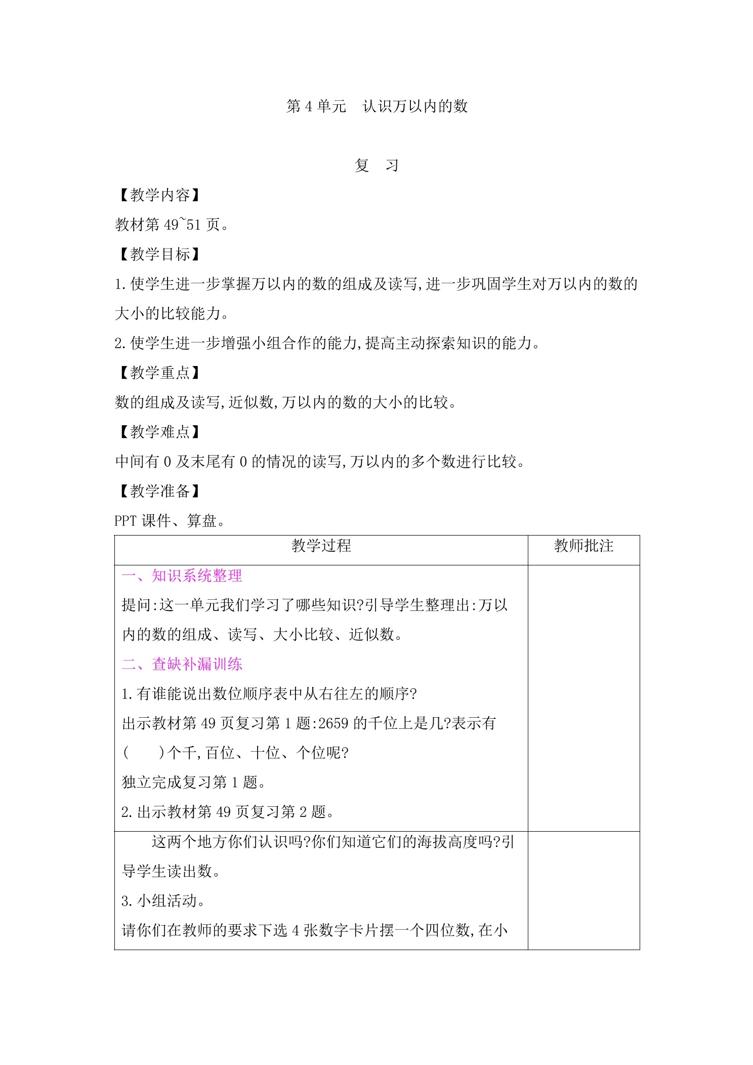 【★★★】2年级数学苏教版下册教案第4单元《单元复习》