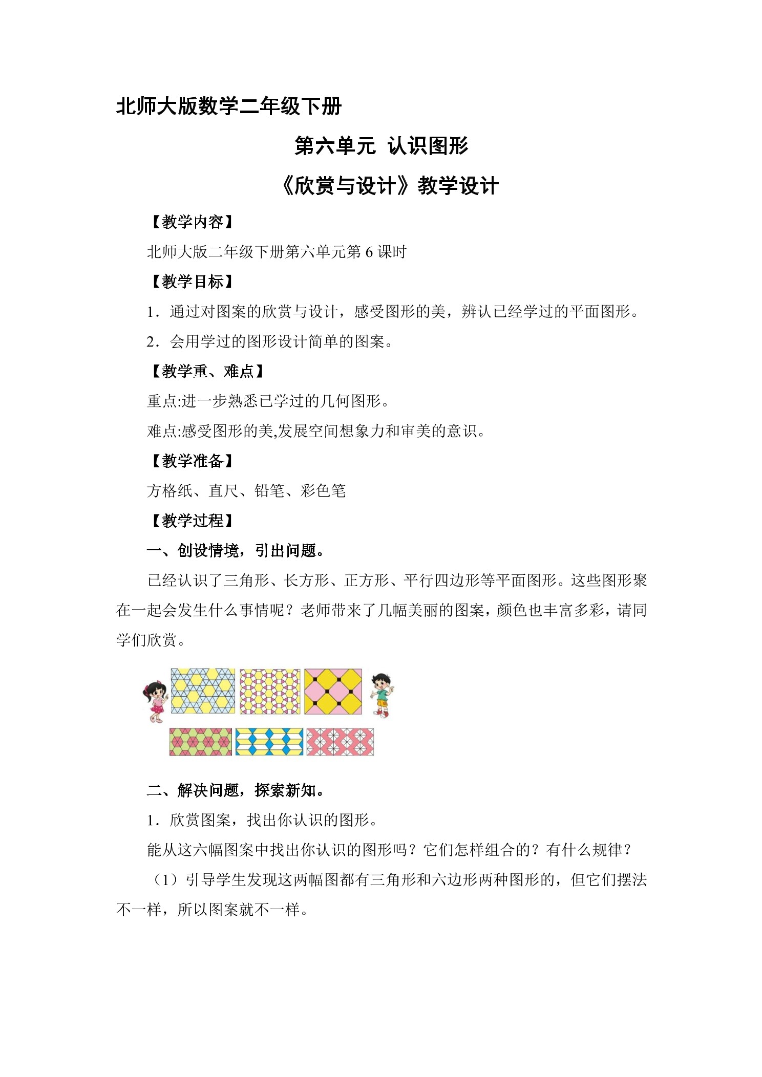 【★★★】二年级数学北师大版下册教案第6单元《欣赏与设计》