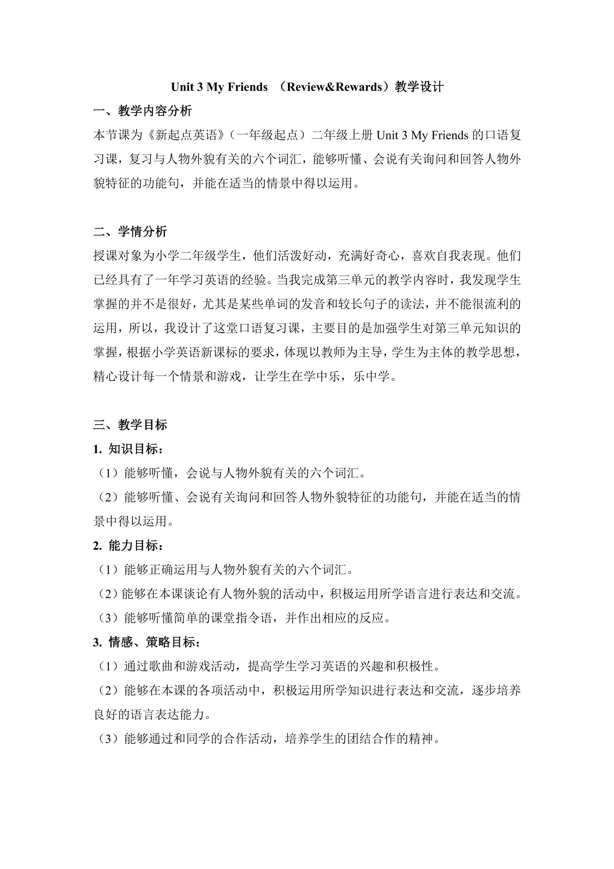 【教案】二年级上册英语人教版新起点Unit 3 Review & Rewards 01