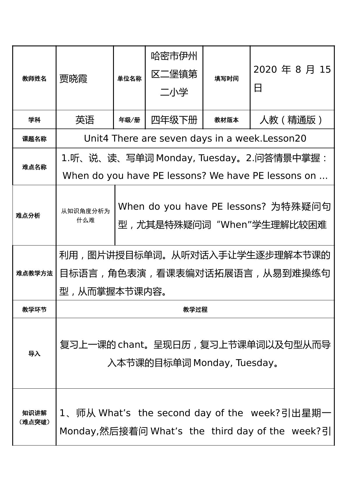 Unit4 There are seven days in a week.Les