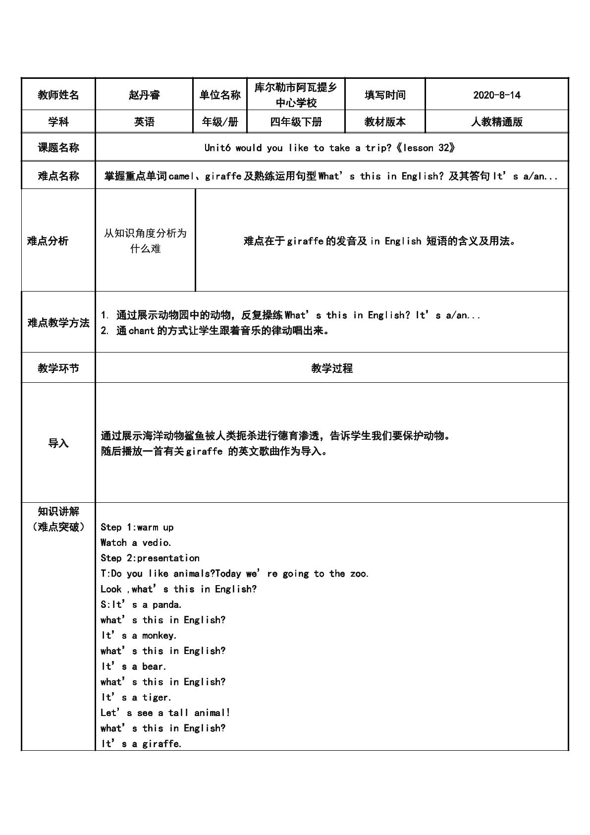 四年级上册 lesson 1 this is my new friend