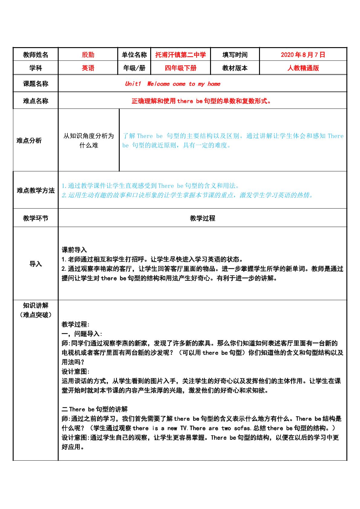 人教精通版Unit 1 Welcome to my new home!