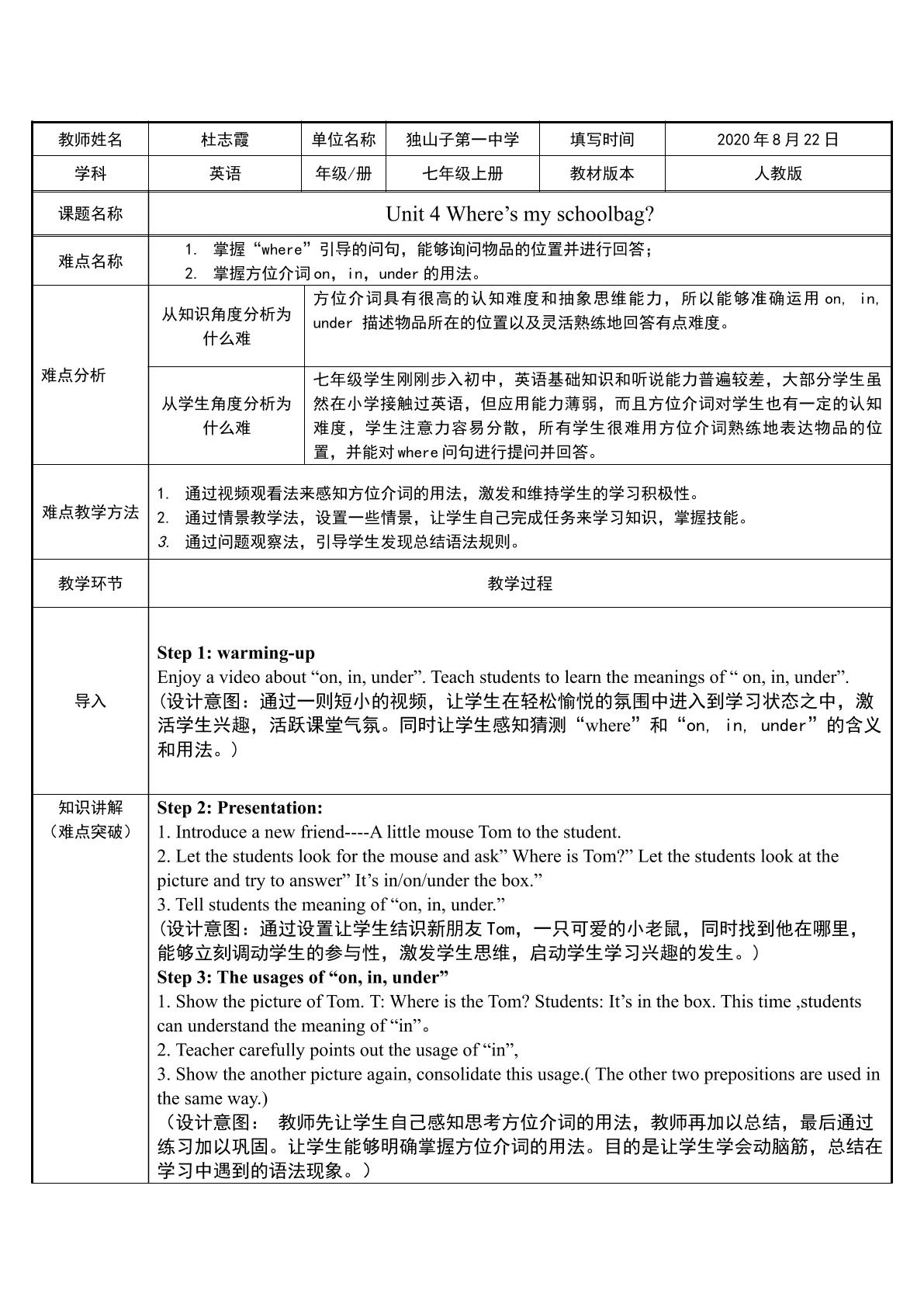 Unit 4 Where's my schoolbag?