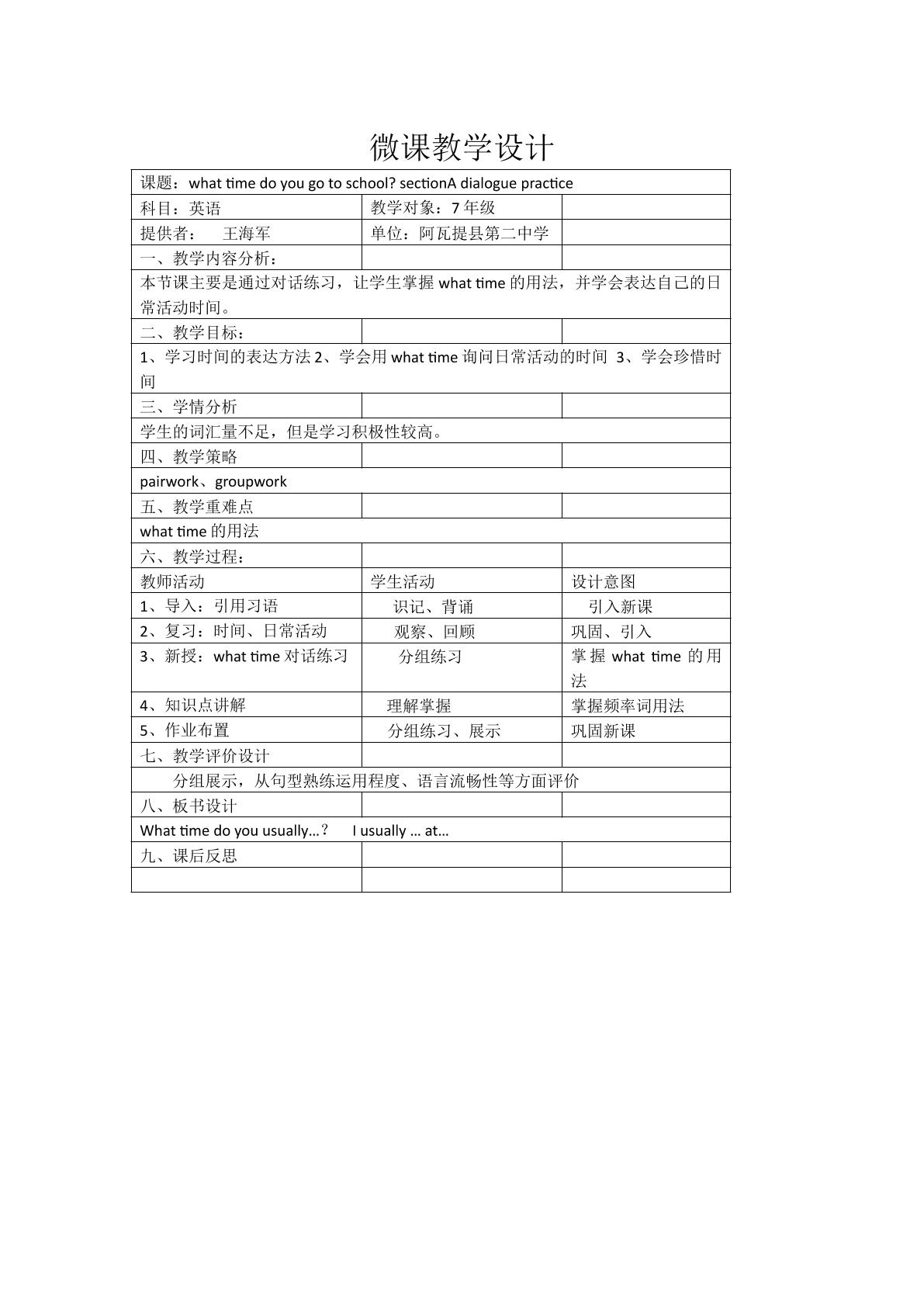 微课“What time do you go to school"