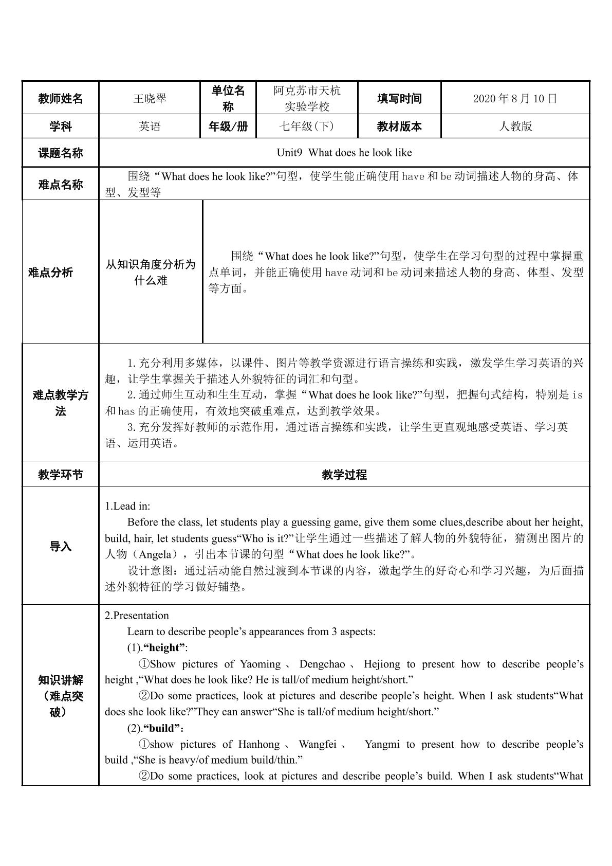 Unit9 What does he look like