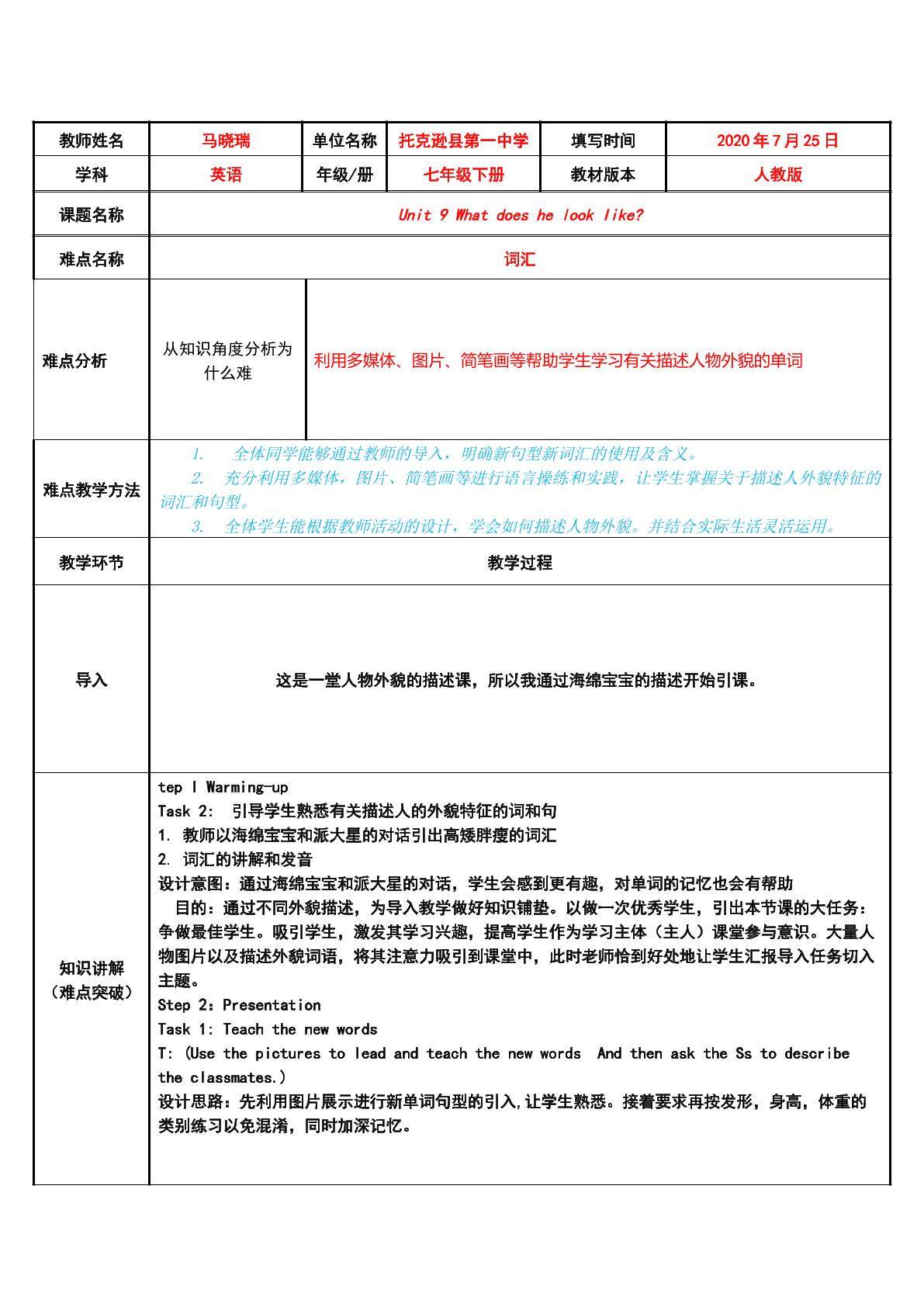 Unit 9 What does he look like?