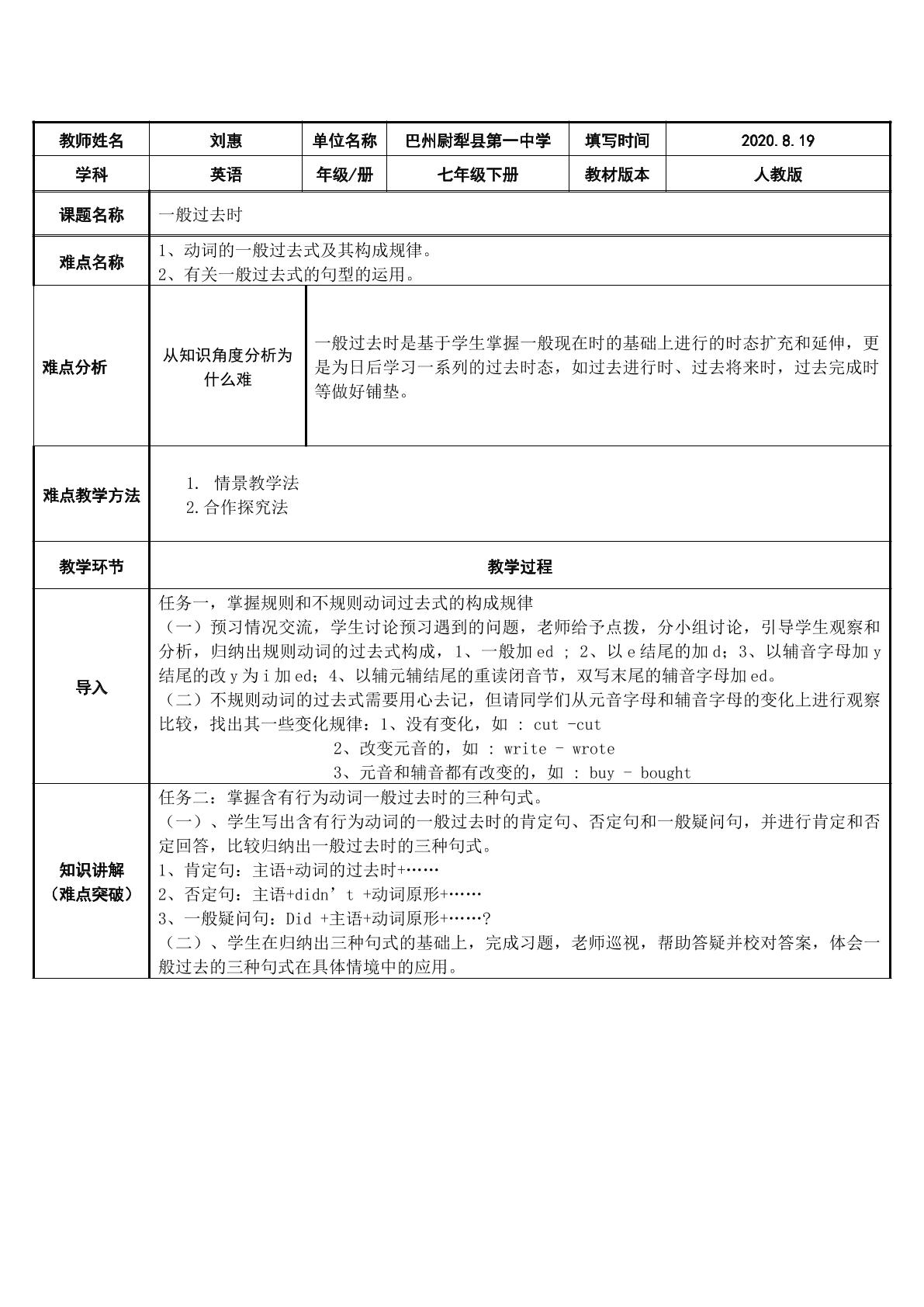 语法:一般过去时