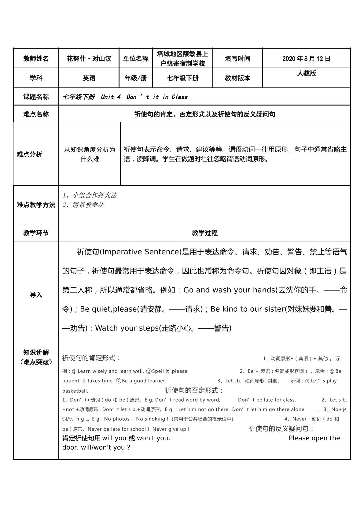 Unit 4 Don't eat in class.