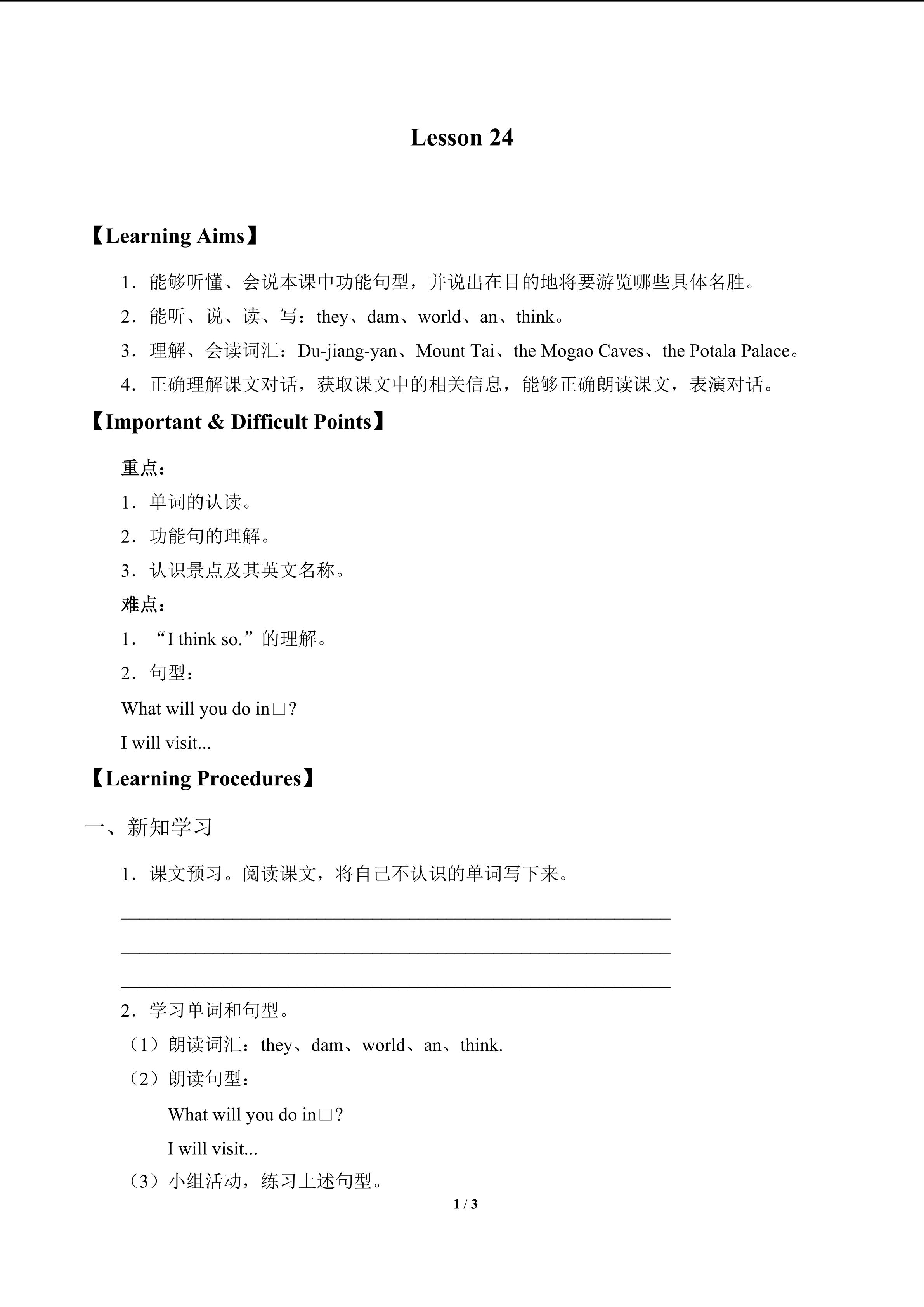 UNIT SEVEN WHAT WILL YOU DO IN CHENGDU-Lesson 24