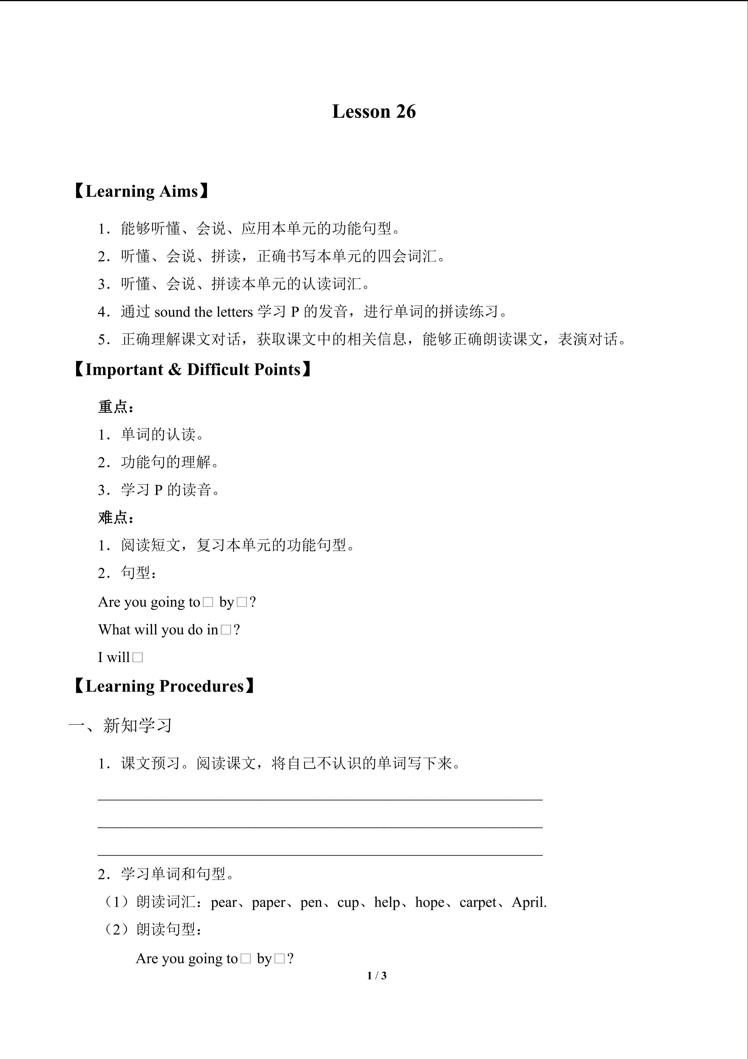 UNIT SEVEN WHAT WILL YOU DO IN CHENGDU-Lesson 26