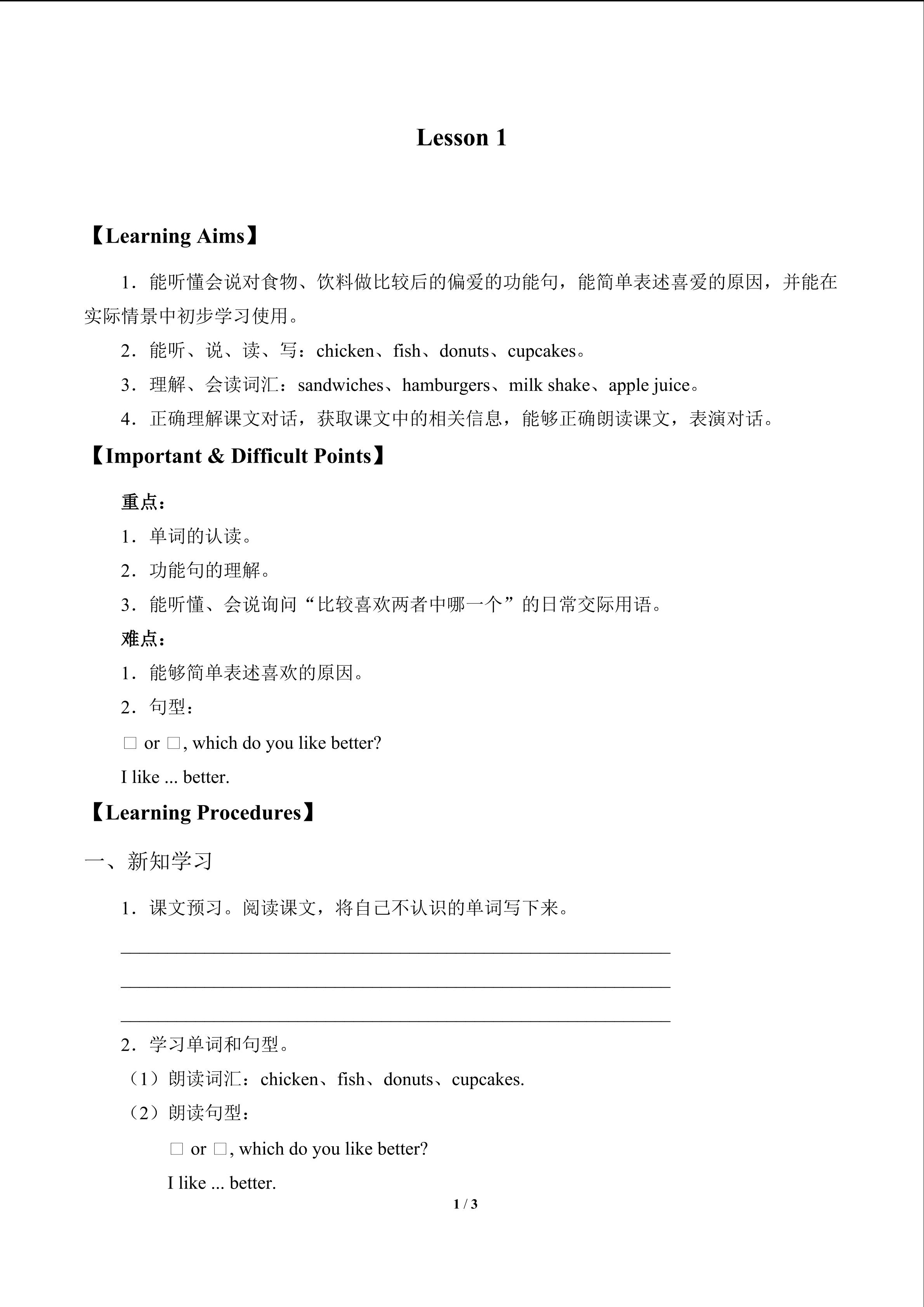 UNIT ONE WHICH DO YOU LIKE BETTER-Lesson 3
