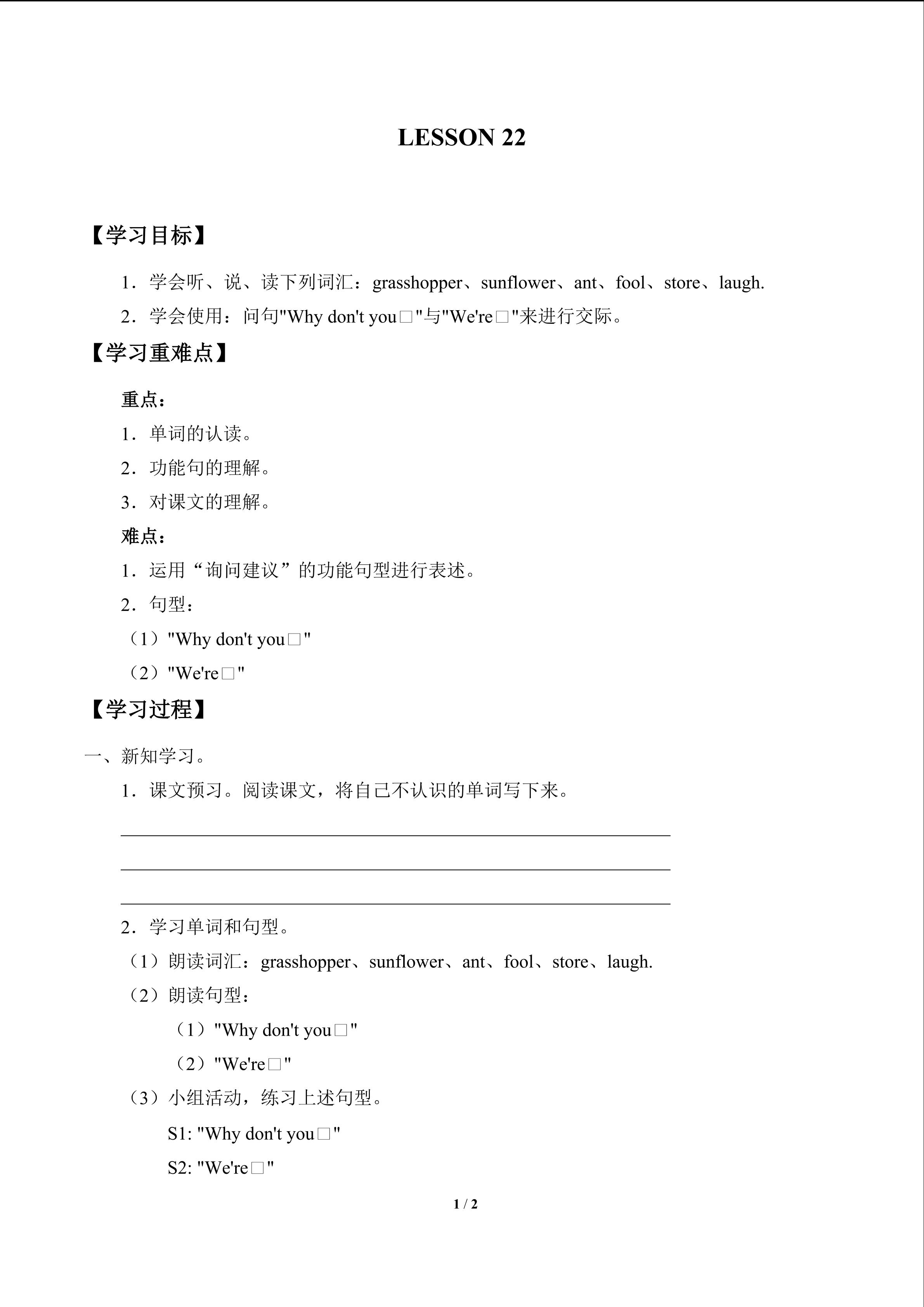 UNIT 4 INTERESTING FABLES-LESSON 22