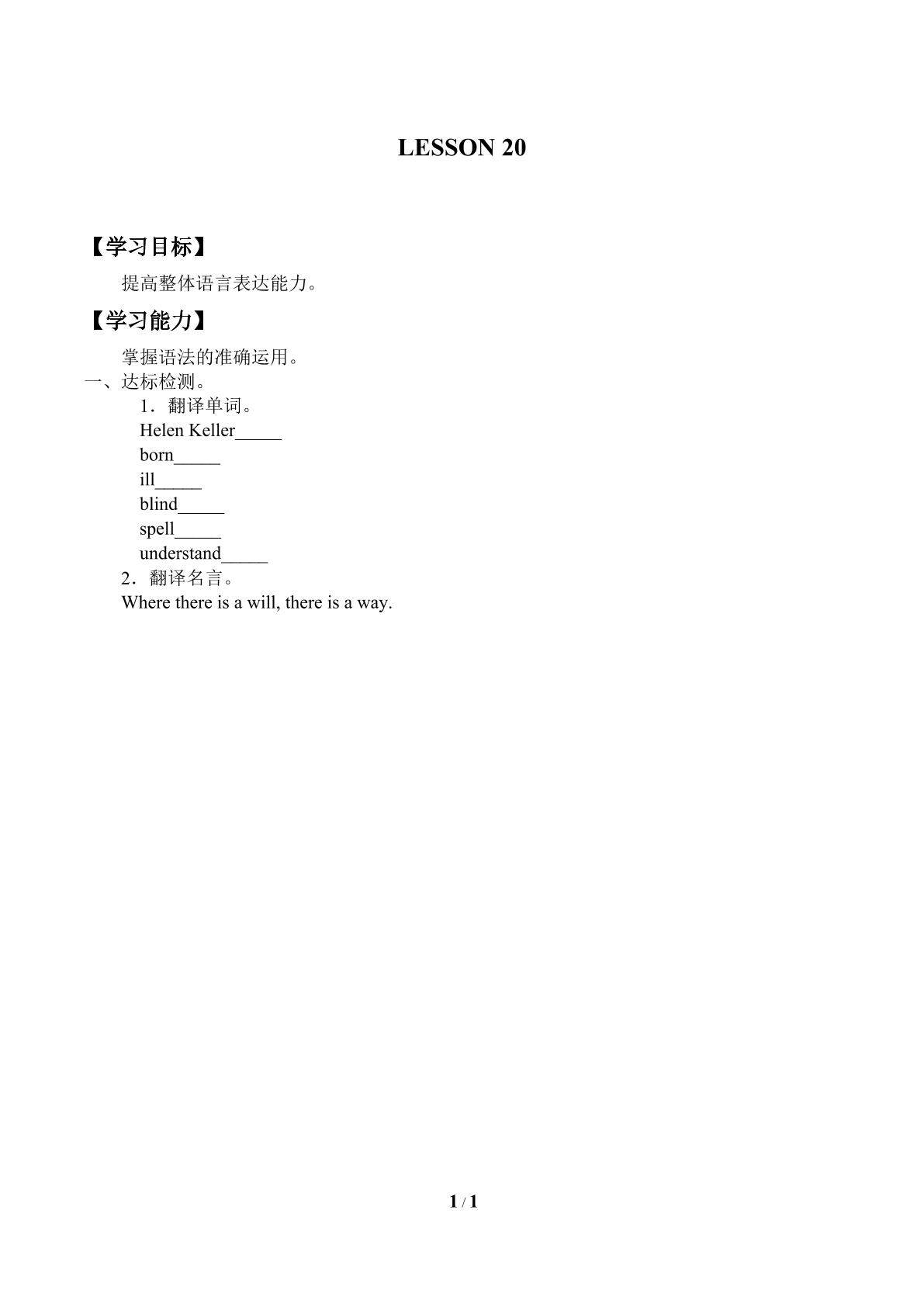 UNIT 3 GREAT PEOPLE-LESSON 20