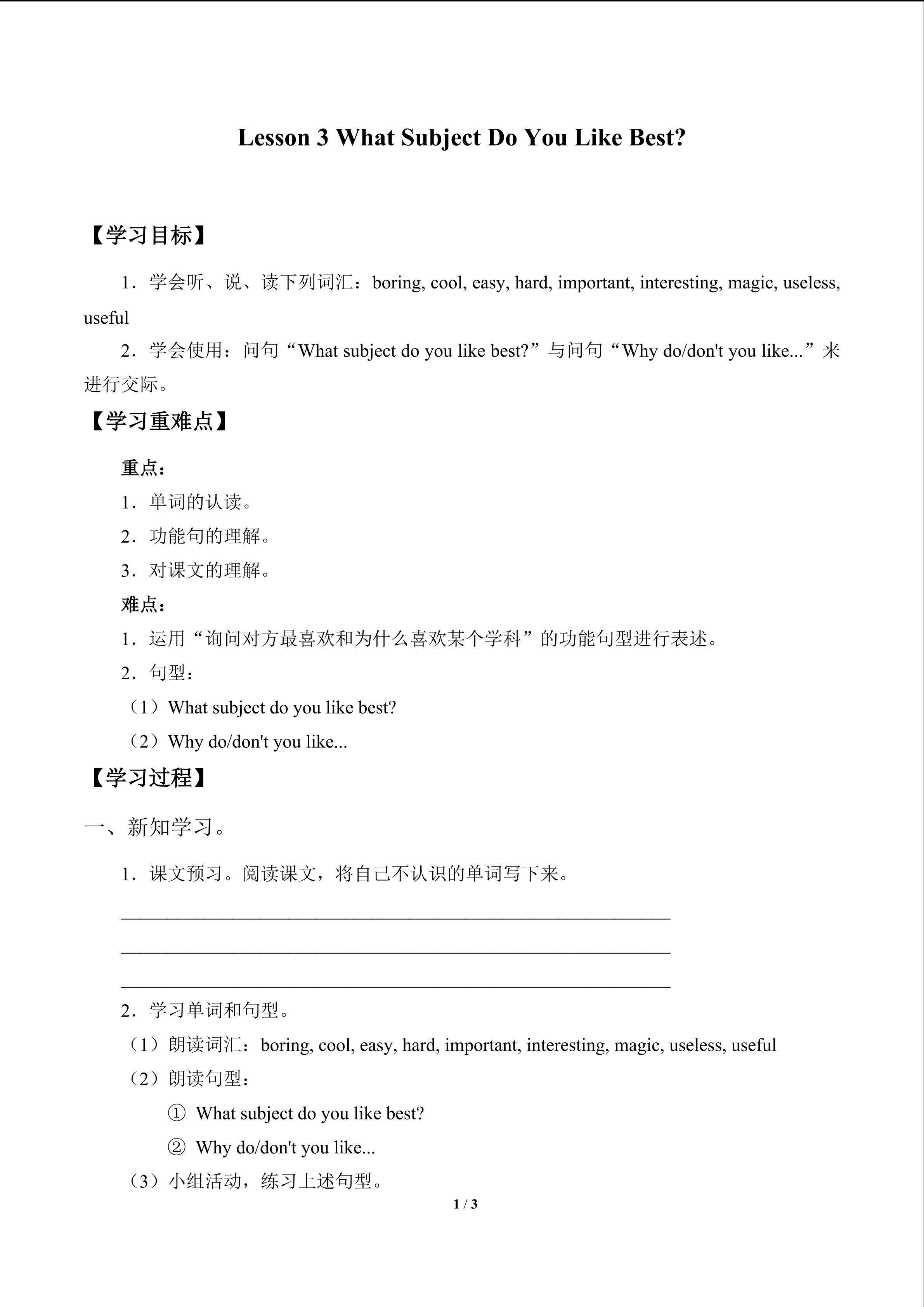 Lesson 3 What Subject Do You Like Best?