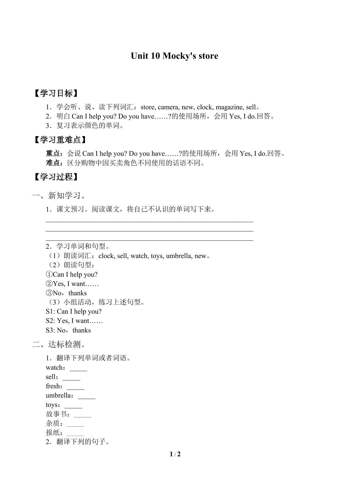 Unit 10 Mocky's store