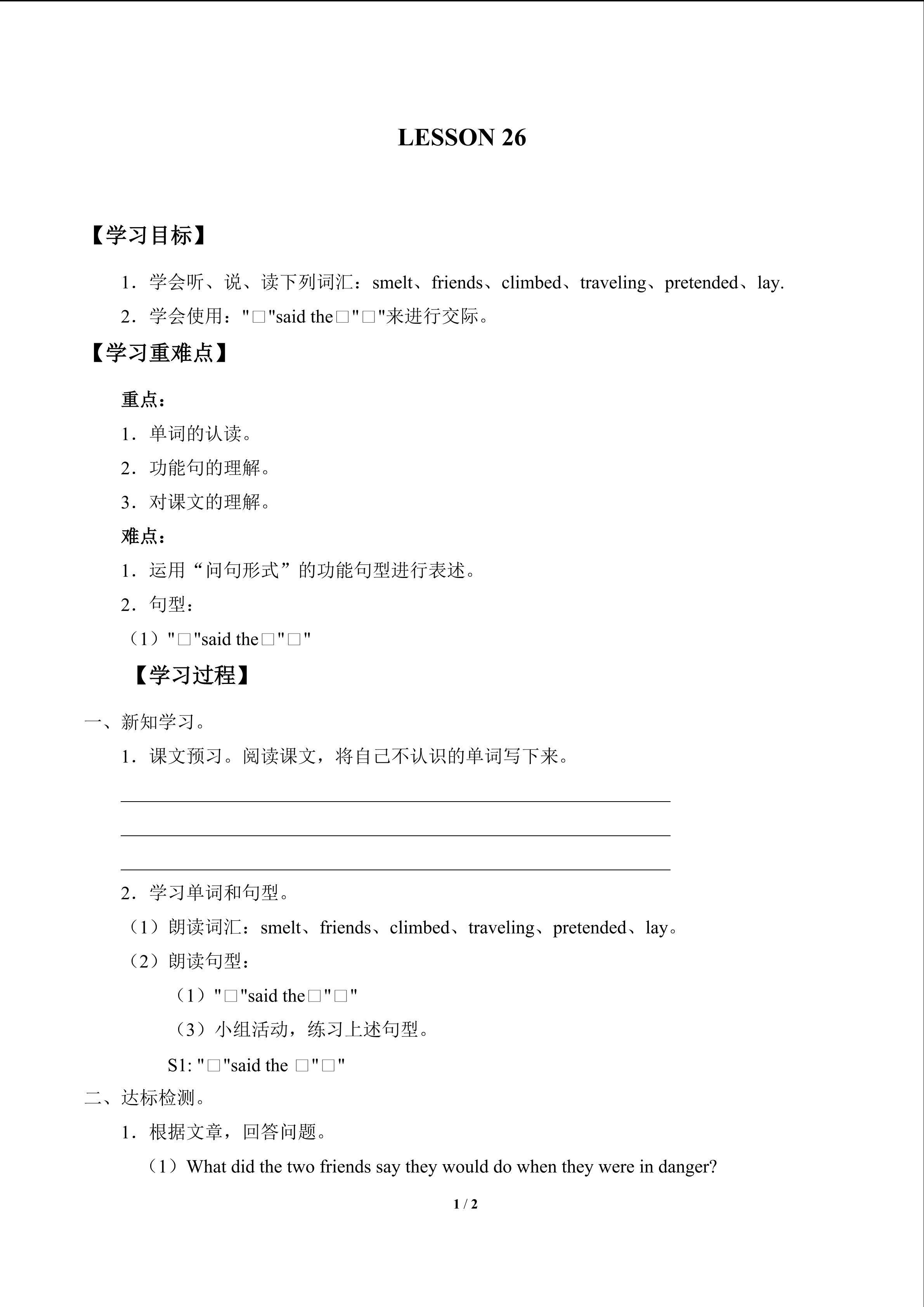 UNIT 4 INTERESTING FABLES-LESSON 26