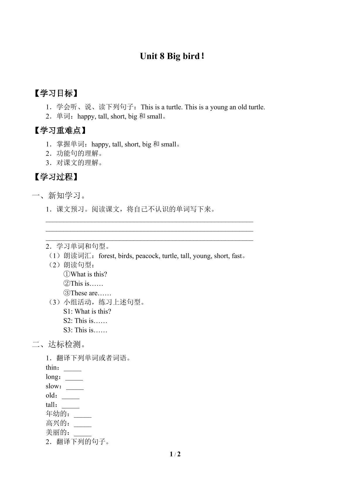 Unit 8 Big bird!