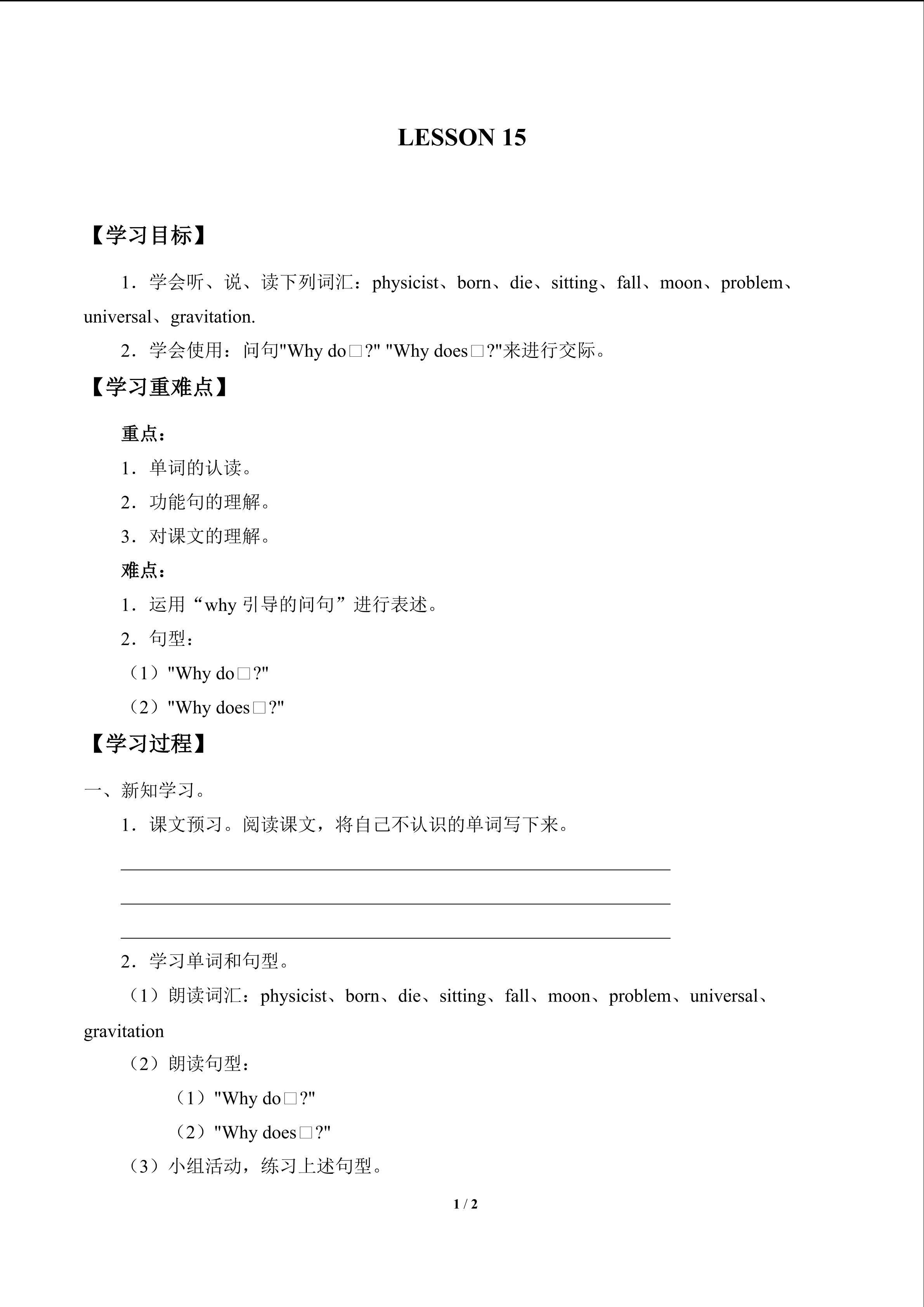 UNIT 3 GREAT PEOPLE-LESSON 15