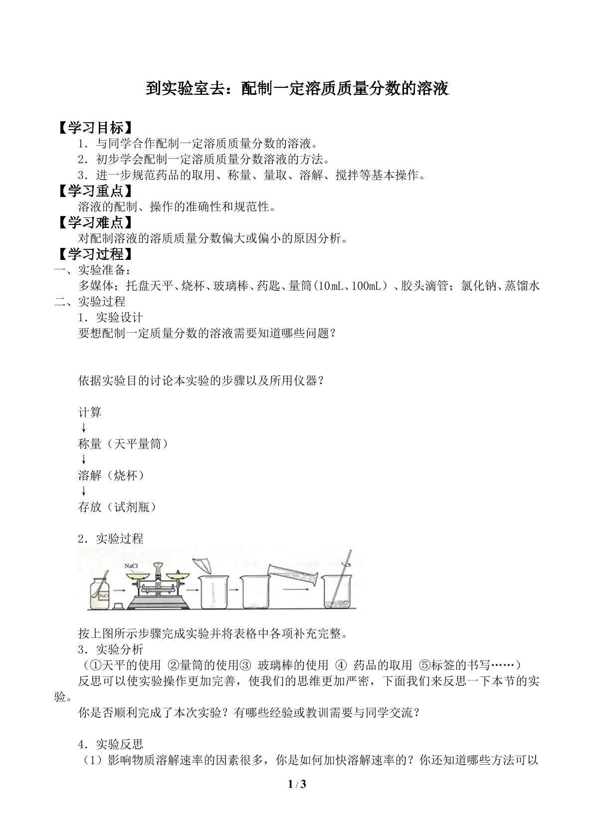 到实验室去:配制一定溶质质量分数的溶液_学案1