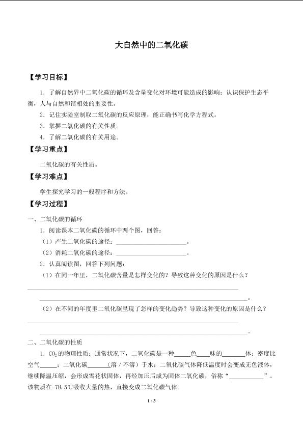 到实验室去:二氧化碳的实验室制取与性质_学案1