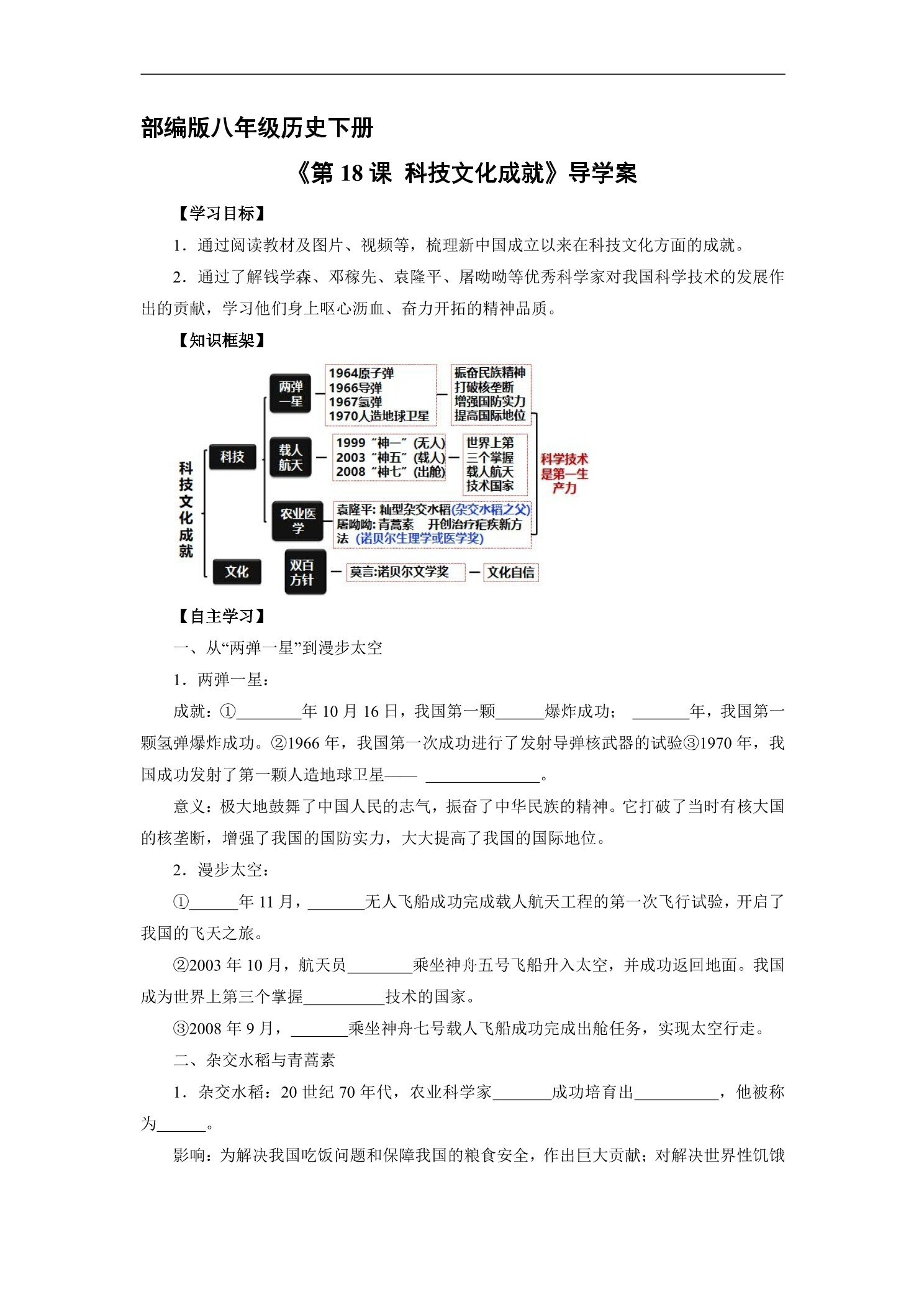 8年级历史部编版下册学案《第18课 科技文化成就》