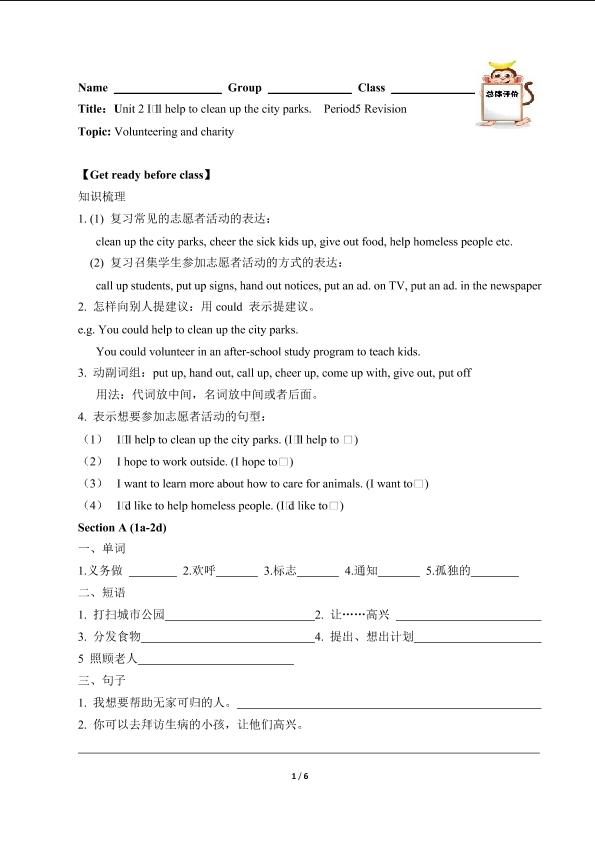 I'll help to clean up the city parks.(含答案) 精品资源_学案1
