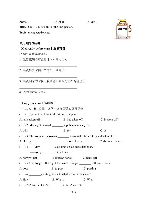 Life is full of the unexpected.(含答案) 精品资源_学案1