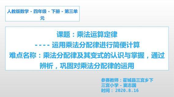 标签: 网龙、 教学资源、 课件、 下册、 1级、 课件、 四年级、 文档、 课件、 2020年后赛事资源、 ZYK、 有重难点、 小学、 教学难点课件、 重难点课件、 人民教育出版社(人教版)、 重难点试点、 ZYKB、 数学、 正规教育、 K12、 101教育PPT成套资源、 素材类型、 有课件教案微课、 有知识点、 运用乘法分配律进行简便计算