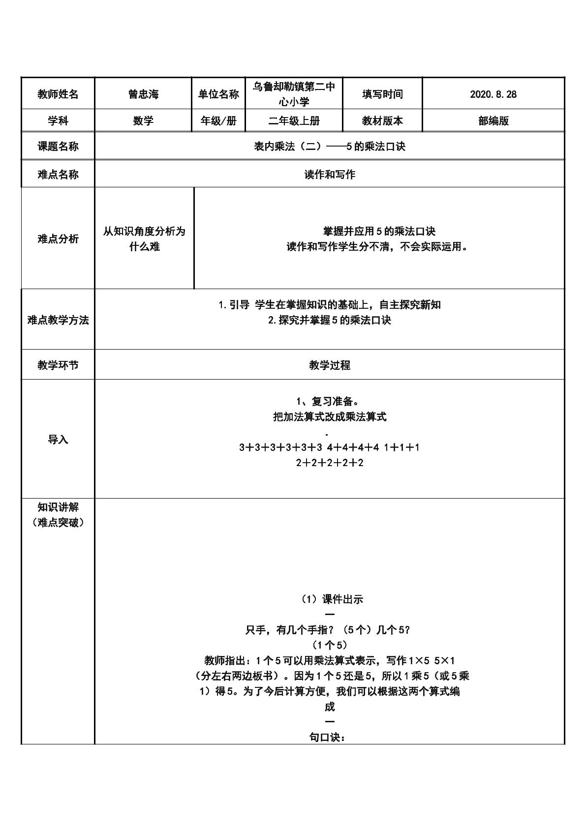 这是一套关于《5的乘法口诀》的素材,格式为DOCX,文件大小为0.01 MB,页数为4页,请使用101教育PPT软件打开使用;