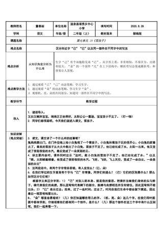 标签: 网龙、 教学资源、 教案、 正规教育、 教案、 1级、 教学设计、 文档、 K12、 重难点教案、 2020年后赛事资源、 ZYK、 有重难点、 素材类型、 小学、 语文、 人民教育出版社(人教版部编版)、 有课件教案微课、 ZYKB、 二年级、 上册、 有知识点