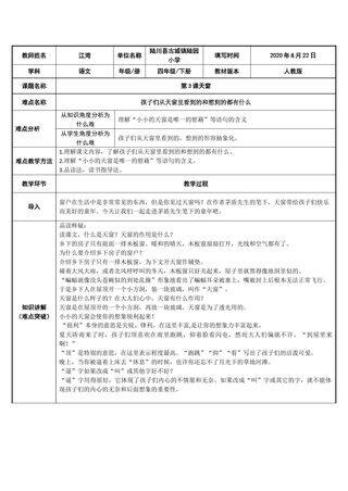 标签: 网龙、 教学资源、 教案、 人民教育出版社(部编版五四制)、 新、 正规教育、 教案、 1级、 四年级、 教学设计、 文档、 K12、 重难点教案、 2020年后赛事资源、 ZYK、 101教育PPT成套资源、 有重难点、 素材类型、 小学、 语文、 下册、 有课件教案微课、 ZYKB、 有知识点