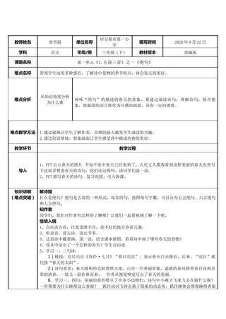 标签: 网龙、 教学资源、 教案、 人民教育出版社(部编版五四制)、 一等奖、 新、 正规教育、 教案、 1级、 教学设计、 文档、 K12、 获奖教案、 重难点教案、 2020年后赛事资源、 ZYK、 101教育PPT成套资源、 素材类型、 小学、 语文、 下册、 三年级、 有课件教案微课、 ZYKB
