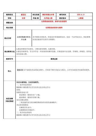 这是一套关于《化学药品的保存与使用》的素材,格式为DOCX,文件大小为0.02 MB,页数为4页,请使用101教育PPT软件打开使用;