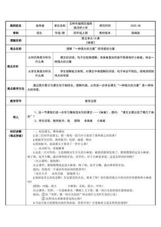 标签: 网龙、 教学资源、 教案、 正规教育、 教案、 1级、 四年级、 教学设计、 文档、 K12、 重难点教案、 2020年后赛事资源、 ZYK、 101教育PPT成套资源、 素材类型、 小学、 语文、 人民教育出版社(人教版部编版)、 有课件教案微课、 ZYKB、 上册、 有知识点