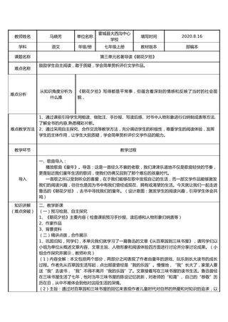 标签: 网龙、 教学资源、 教案、 人民教育出版社(部编版五四制)、 上册、 新、 正规教育、 教案、 1级、 教学设计、 文档、 K12、 重难点教案、 2020年后赛事资源、 初中、 ZYK、 101教育PPT成套资源、 素材类型、 语文、 有课件教案微课、 七年级、 ZYKB、 有知识点