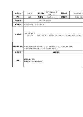 标签: 网龙、 教学资源、 教案、 六年级、 新、 正规教育、 教案、 1级、 教学设计、 文档、 K12、 重难点教案、 2020年后赛事资源、 ZYK、 101教育PPT成套资源、 上册、 北京师范大学出版社(北师大版)、 素材类型、 小学、 语文、 有课件教案微课、 ZYKB